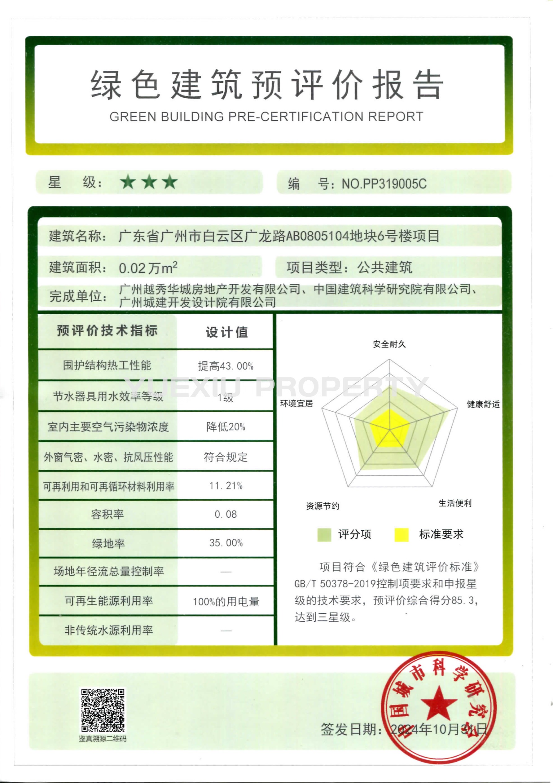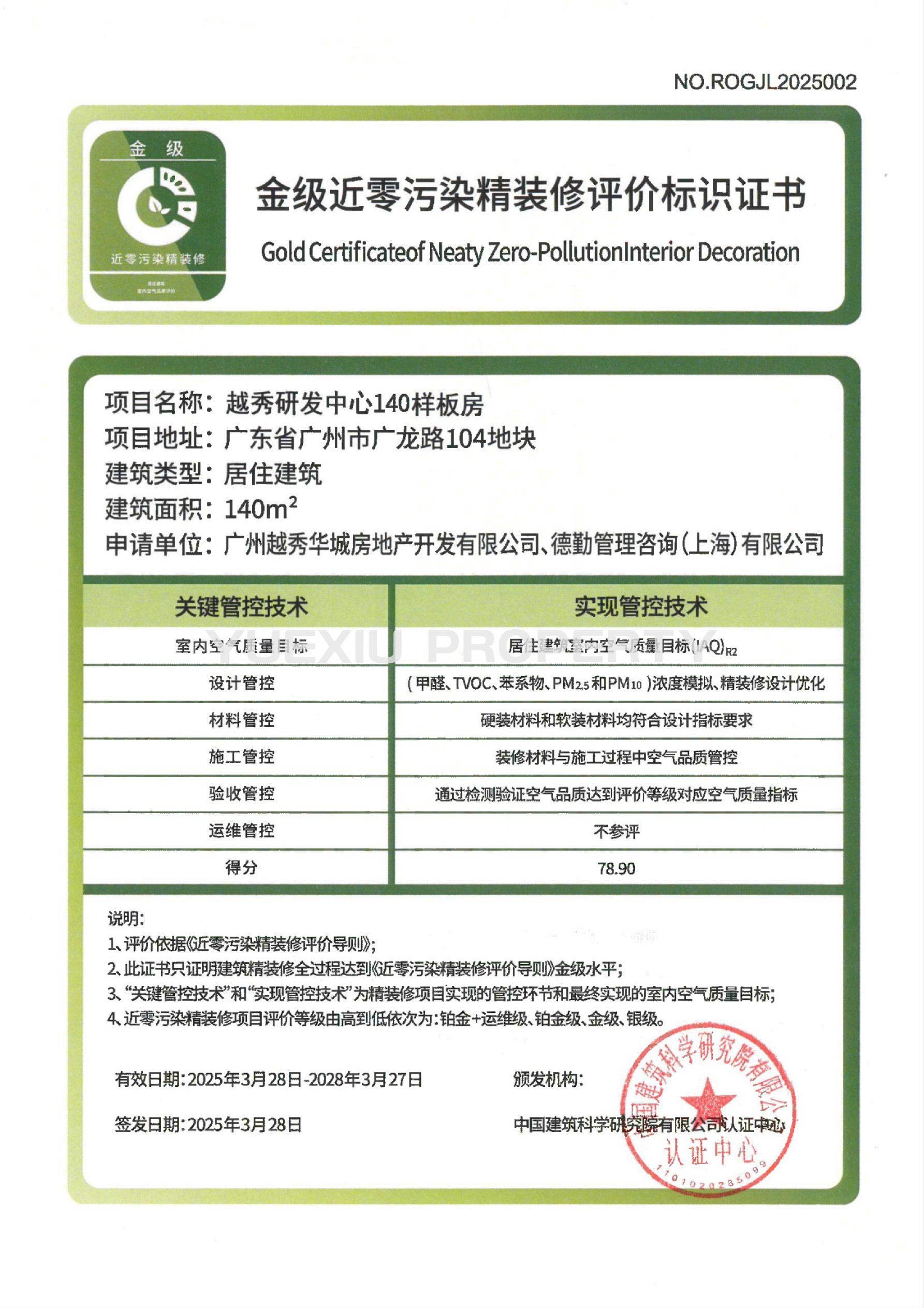 At present, the building body has obtained a total of five certifications: Zero Carbon Building Certification, Zero-Energy Building Certification, Three-Star Green Building Pre-certification, Healthy Building Gold Certification and Near-Zero Pollution Gold Certification. It is the first near-zero pollution finishing pilot project in China, and the first project in China to collect all the certifications of Zero Carbon Building Certification, Zero-Energy Building Certification, Three-Star Green Building Pre-certification, Healthy Building Gold Certification and Near-Zero Pollution Gold Certification.
