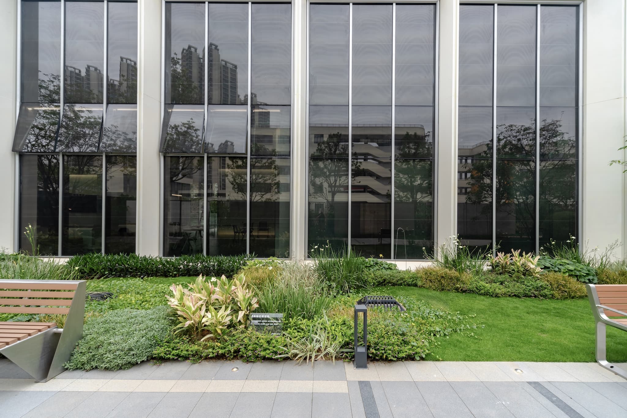 The R&D Centre building itself reflects Yuexiu's good product technology precipitation and cutting-edge exploration. For example, the aboveground building uses UHPC(Ultra-High Performance Concrete) precast high-strength precast concrete components, thermochromic glass, photovoltaic glass, integrated thermal insulation envelope system, rooftop photovoltaic system, photovoltaic DC photovoltaic DC photovoltaic multi-split units, and other technologies to achieve “Building carbon neutral”. The underground building uses natural ventilation, natural lighting, near-zero pollution, intelligent energy control and other technologies to create a green, low-carbon, healthy and comfortable, intelligent and convenient space.